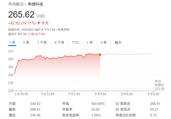 过去一年表现最亮眼的华尔街股票之一,在本周三迎来又一个大涨日:数据存储设备制造商希捷科技(Seagate Technology Holdings)股价当天收涨19.11%,至265.62美元。