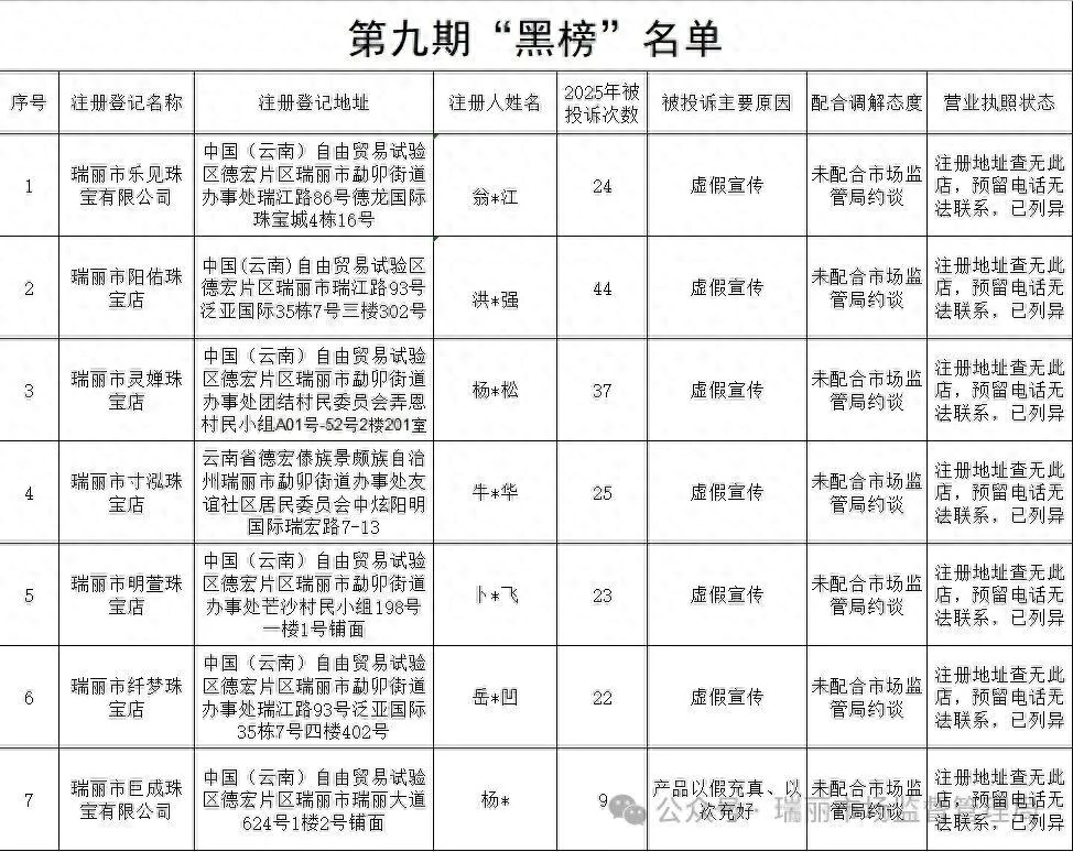 云南瑞丽:7家珠宝翡翠直播商家上“黑榜”
