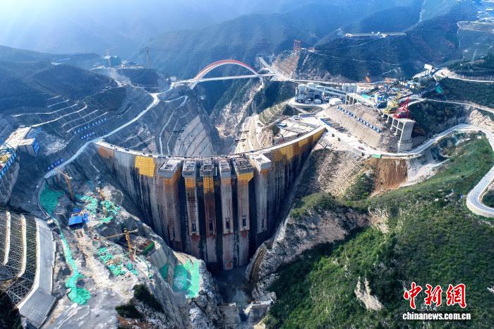 工程采用混凝土双曲拱坝结构,坝顶高程804米、最大坝高230米,总库容32.76亿立方米,水电站装机11万千瓦,坝体混凝土浇筑总量达194万立方米。