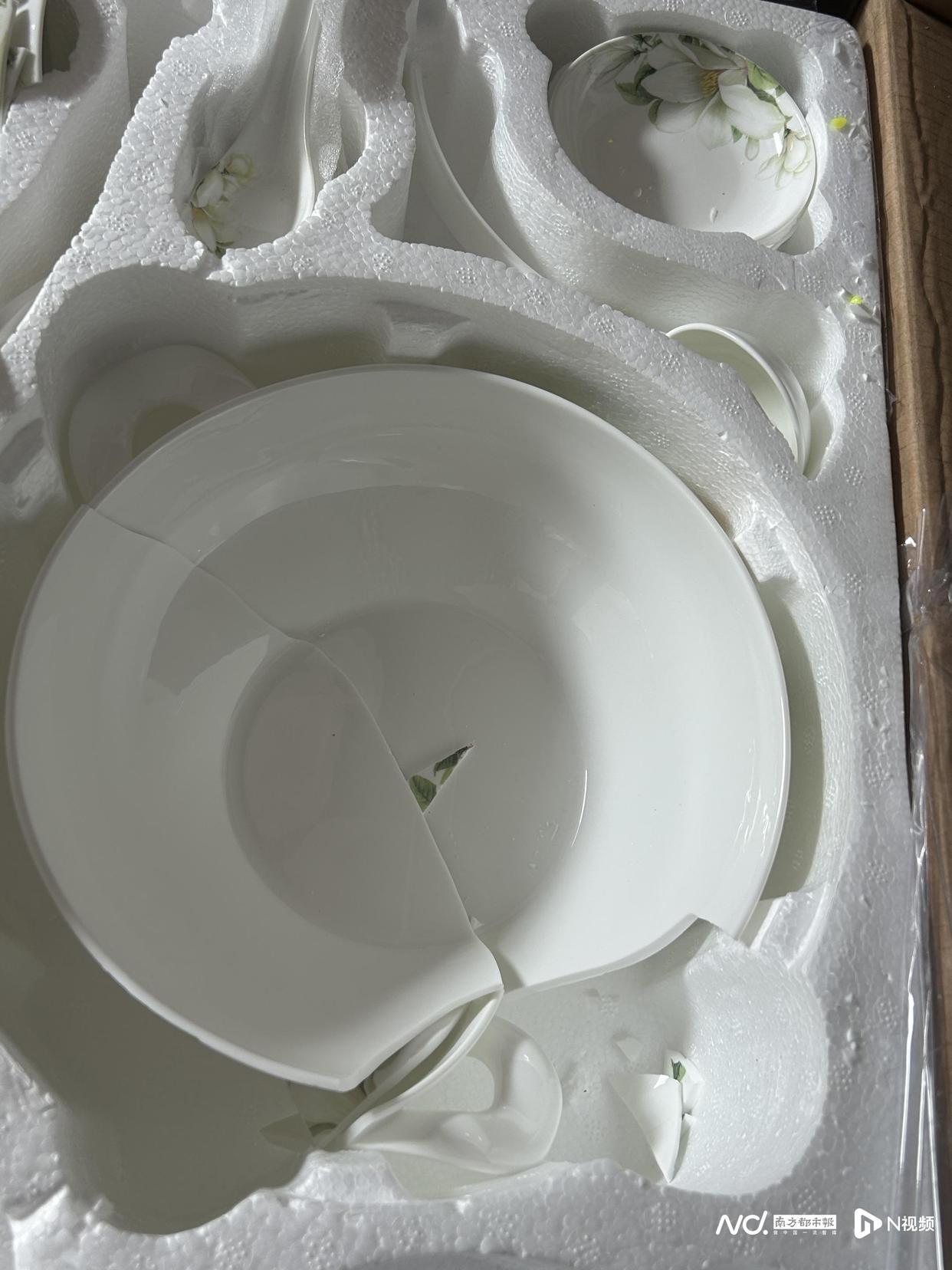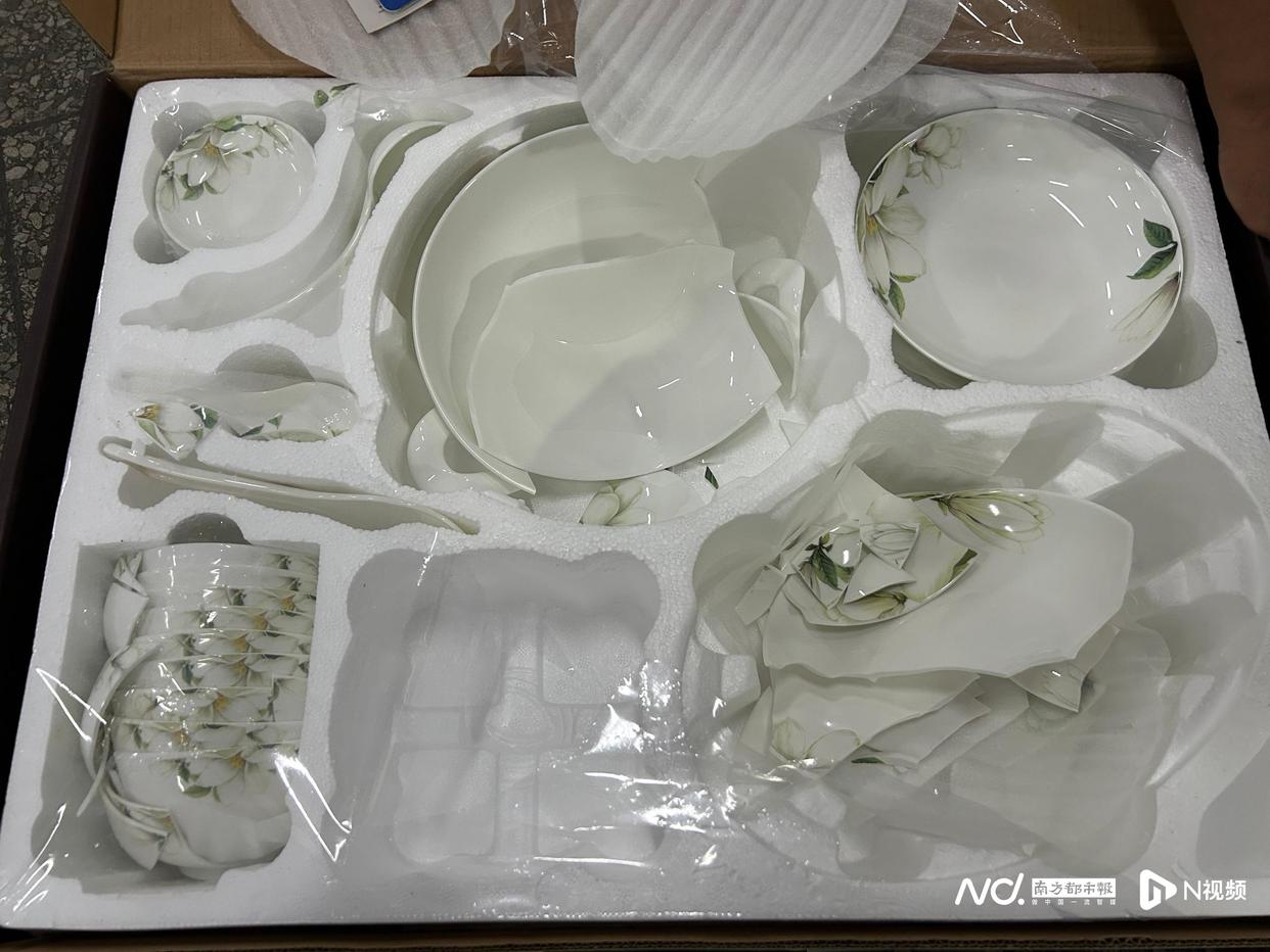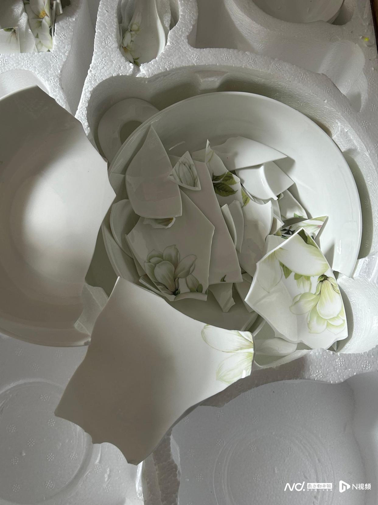 尽管揽收时拍摄的照片显示礼盒外包装基本完好,但收货时却发现盒内已有多个餐具破碎。深圳派送点工作人员在初步查验后告知她“碎了一个汤锅、五个小碗,碟子数量暂无法确认”,并解释损坏可能源于“货物掉落、路途颠簸或被重物挤压”等多种因素。