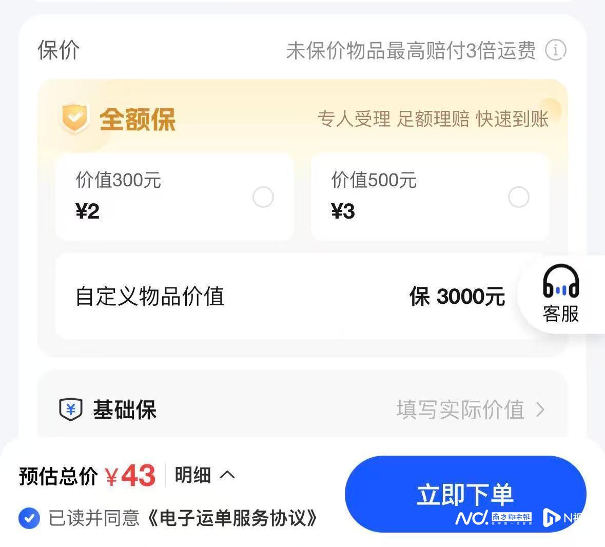 ☞ 若选择报价后,选择“全额保”增值服务且支付保价费用的,若托寄物出现全部丢失或损坏(含无法维修且有证明)的情况下,保价范围内根据实际损失金额进行全额赔偿,最高不超过报价金额。