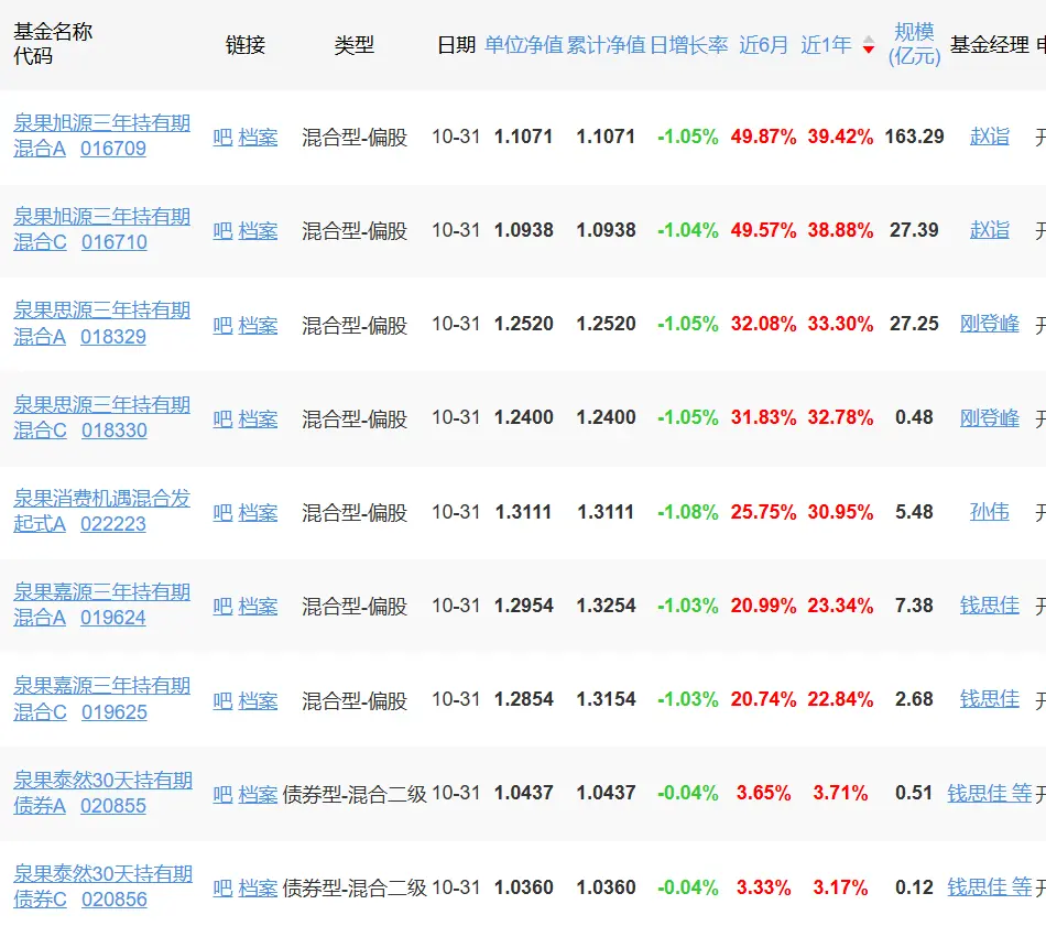 泉果基金旗下规模最大的是泉果旭源三年持有混合,发行于2022年10月,是泉果基金发行的首只基金产品,设有三年持有期。天天基金网显示,截至10月31日,泉果旭源三年持有混合A今年以来收益率为47.46%,同类排名在前20%左右,成立以来的收益率为10.71%,跑输同期沪深300指数。三季报显示,泉果旭源三年持有混合的重仓股主要有宁德时代、腾讯控股、立讯精密、快手、天山铝业等。