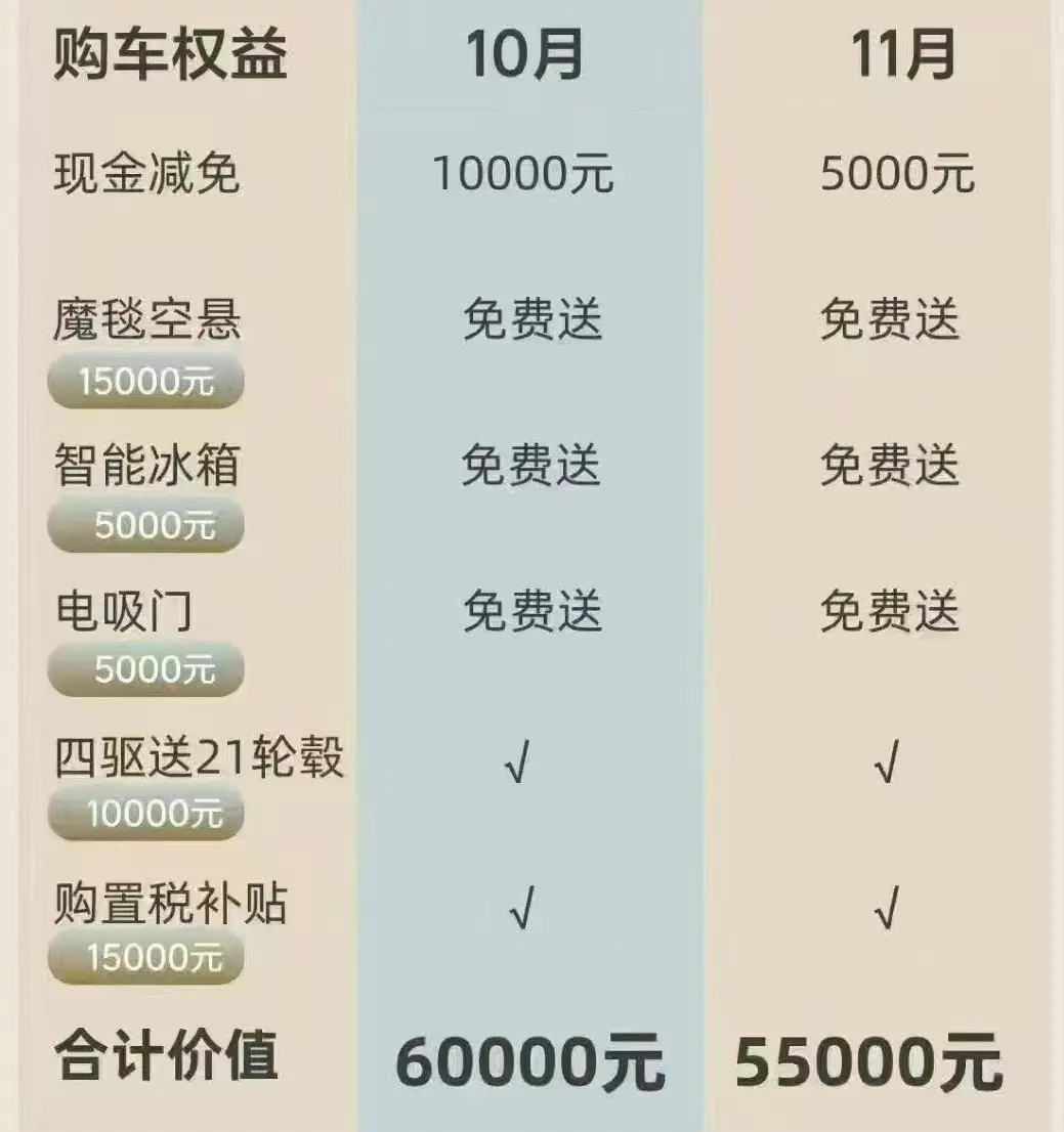 “兜底”政策的背后,车市正处于年底冲刺期,车企们开始利用新能源购置税调整“窗口期”促销量。