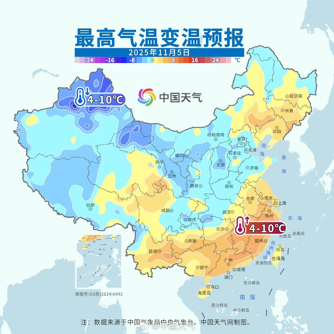 据中国天气网消息:11月5-9日,将有较强冷空气自西向东影响我国大部地区,其中5-7日主要影响新疆及内蒙古西部地区,8-9日冷空气东移南下影响长江以北大部地区,局地降温10℃以上。如果说10月中旬那股冷空气是“干冷型”,这股冷空气则属于“湿冷型”,不仅带来降温,还会制造大范围雨雪天气。