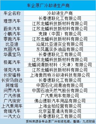 车企原厂冷却液生产商。制图|九派财经记者舒家奎