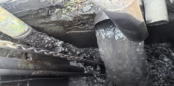 10月31日凌晨,记者再度前往现场调查,发现此前的三处暗管中,有两处正大量排放污水。