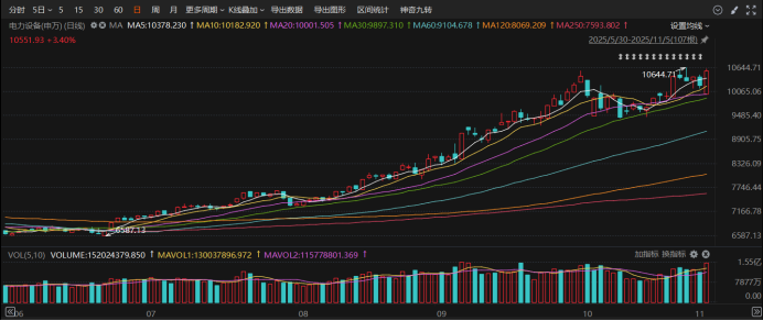 注:电力设备板块指数今日大涨(截至11月5日收盘)
