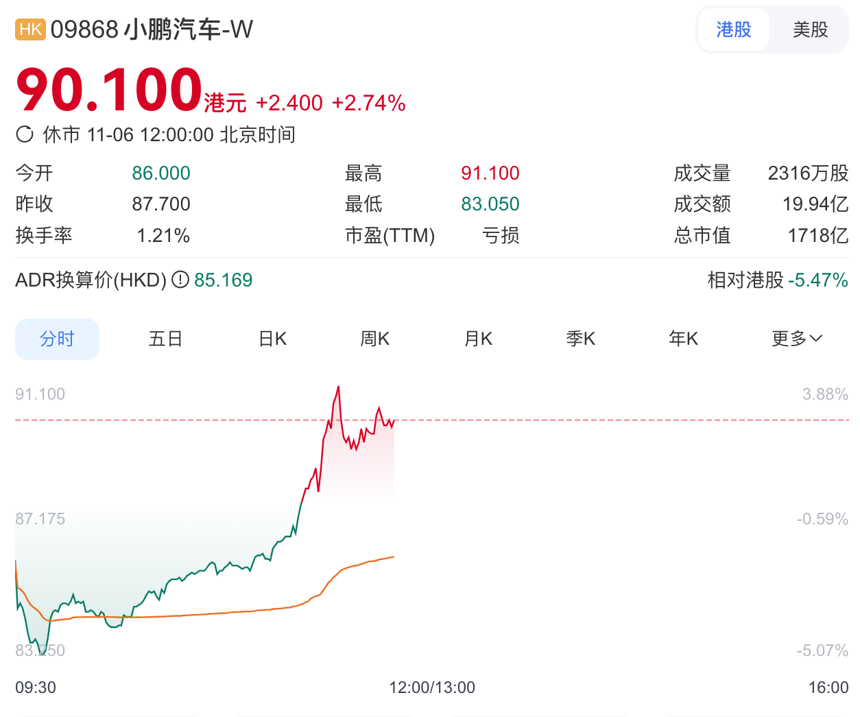 回应视频发布后,小鹏汽车港股直线拉升。截至发稿,小鹏汽车股价涨2.74%,报90.1港元,市值约为1718亿港元。