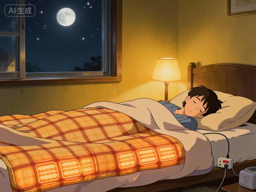 睡前要注意关闭电热毯,或设定好自动关闭时间。以免长时间通电加热导致烫伤,甚至温度过热引发起火危险。