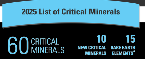 当地时间周四(11月6日),美国地质调查局(USGS)在官网发布了《2025年关键矿产清单》,在铜、银和铀的加入下,清单更新后的总数增至60种。