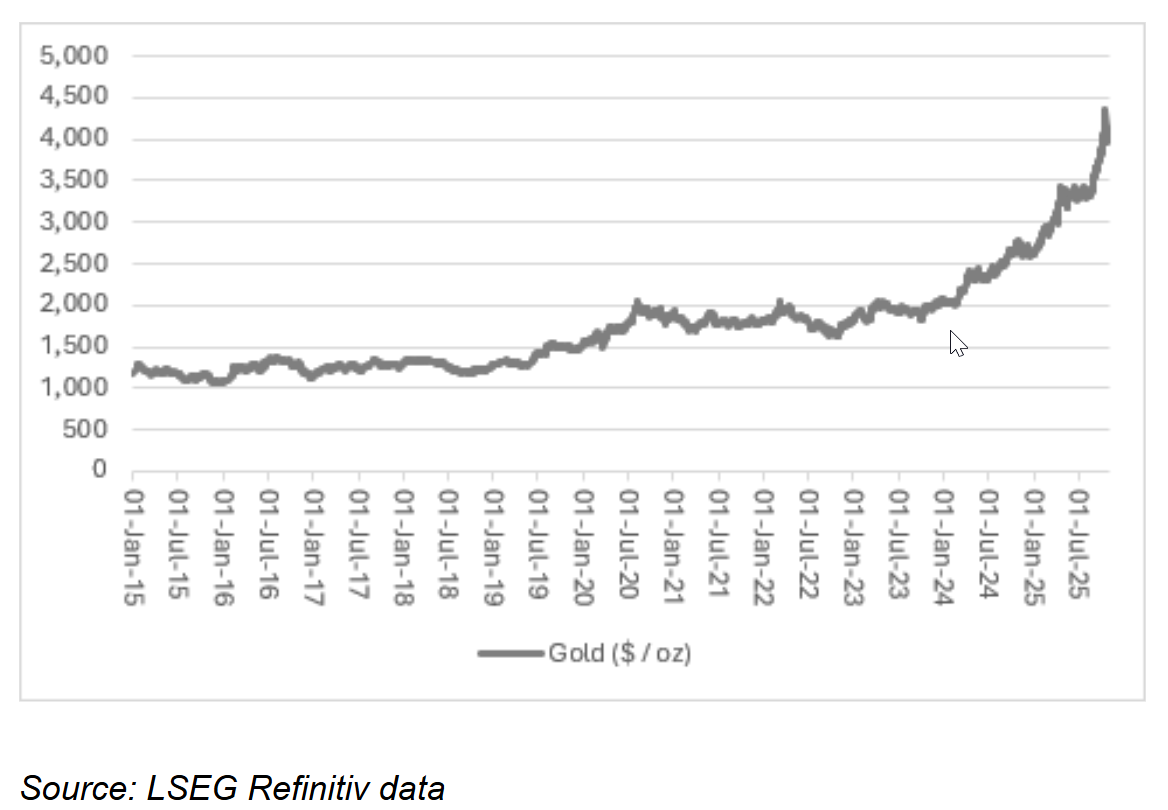 ①英国券商AJ Bell的投资总监Russ Mould表示,黄金正处于1971年以来的第三轮大牛市,前两次牛市也经历了大幅回调;②Mould认为,政府债务、地缘政治、美元和通胀等因素可能在当前周期内推高金价。