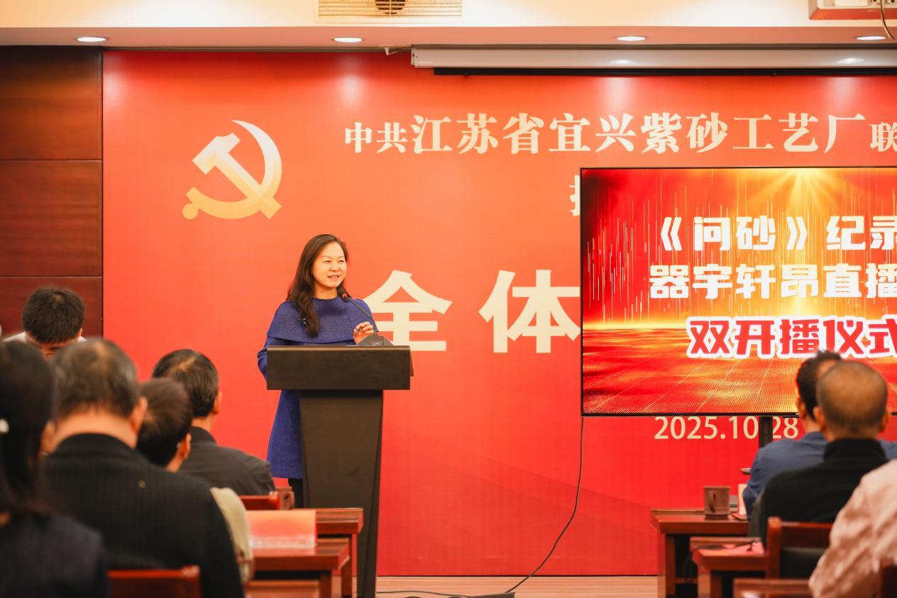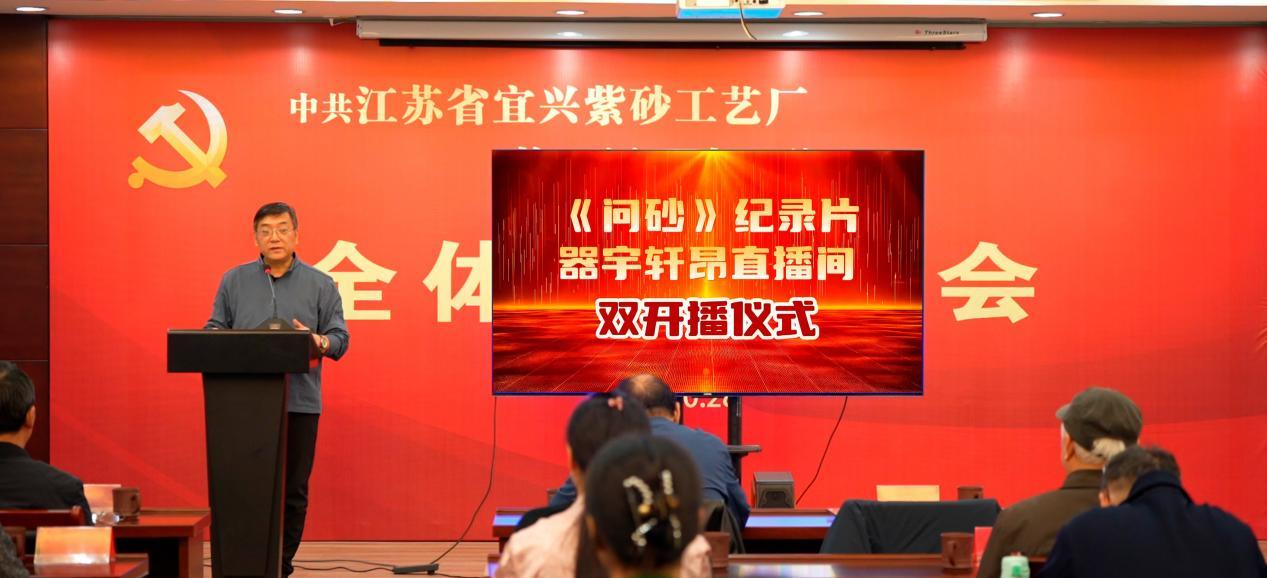 2025年11月6日,由中国工艺美术协会指导,北京器宇轩昂文化发展有限公司出品,大唐风韵(北京)影视有限责任公司承制的《问砂》纪录片开播仪式在江苏省宜兴紫砂工艺厂隆重举行。同步启动的还有器宇轩昂紫砂电商直播间,以“纪录片+电商直播”双开播模式,为紫砂文化传播与产业发展注入双重动能。