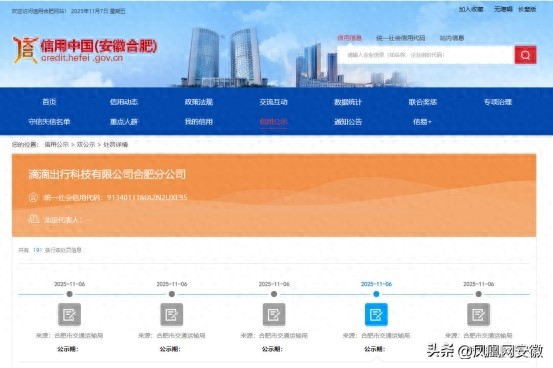 据凤凰网报道,近日,据信用合肥信息,合肥市交通运输局披露多条行政处罚信息,剑指滴滴出行科技有限公司合肥分公司。该公司因提供服务车辆未取得《网络预约出租汽车运输证》《网络预约出租汽车驾驶员证》,同日连收24条罚单,合计12万元。