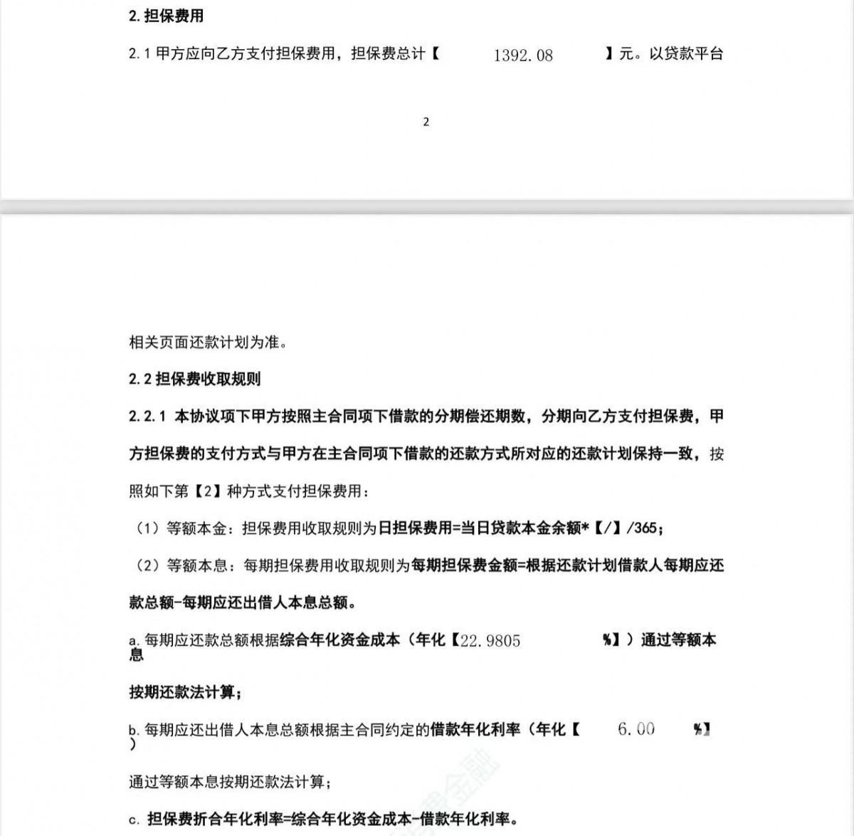 加上担保费和服务费,年利率6%的合同变成接近23%