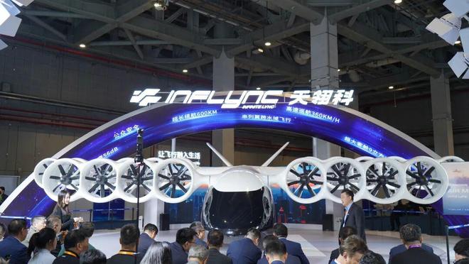 另一侧,天翎科航空与英国EFI Aviation联合展出的全球首架全尺寸倾转涵道翼eVTOL——INFLYNC L600,以混动增程技术填补了长距离低空出行的空白。