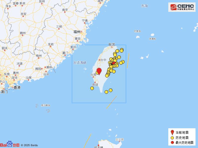 速报参数:据中国地震台网正式测定,11月10日13时0分在台湾台南市发生4.6级地震,震源深度12公里,震中位于北纬23.22度,东经120.62度。