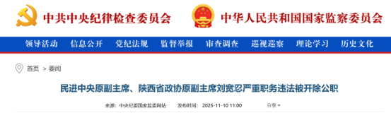 中央纪委国家监委网站11月10日消息,经中共中央批准,国家监委对民进中央原副主席、陕西省政协原副主席刘宽忍严重职务违法问题进行了立案调查。