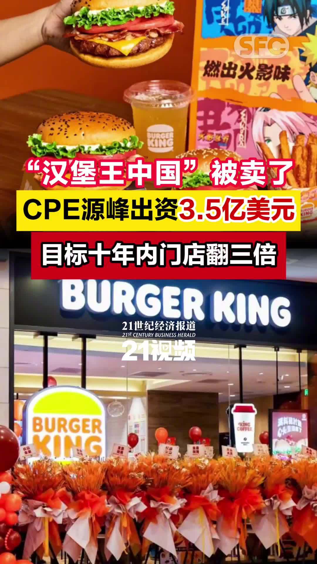 11月10日,CPE源峰与汉堡王品牌达成战略合作,该品牌由餐饮品牌国际集团(RBI)全资持有,双方将成立合资企业汉堡王中国。根据整体规划,双方计划将汉堡王在中国市场的门店规模从目前的约1250家,拓展至2035年的4000家以上,并实现可持续的同店增长。