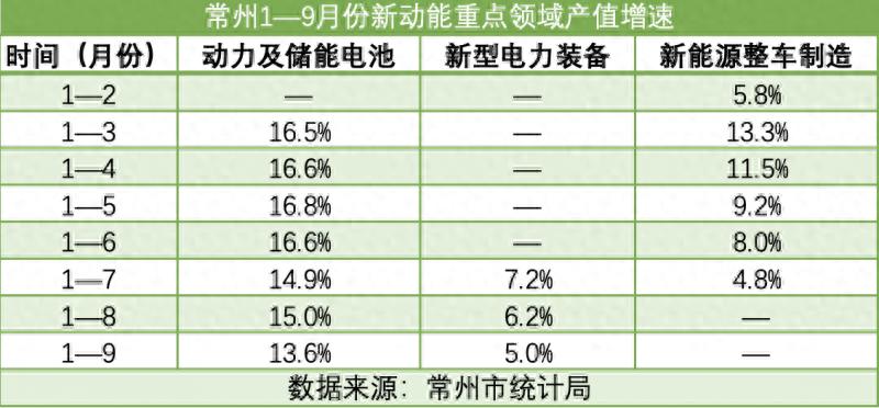 但另一座2023年GDP超过万亿的城市常州,经济增长却遭遇了一定压力。2024年前三季度,常州工业数据稳步增长,新动能保持较快增长,新能源整车制造业产值增长8.3%,对全市规上工业产值增长的贡献率为14.4%;新能源产品产量保持较快增长,其中太阳能电池、新能源汽车、锂离子电池分别增长15.7%、6.2%、4.2%。而今年,《华夏时报》记者查阅常州市统计局月度公布的“新动能”领域产值数据发现,一季度开始公布的动力及储能电池数据,在三季度增速出现了明显下降,从前两季度保持在16.0%以上降至13.6%。而从年初公布的新能源整车制造数据来看,在1—7月份增速下降到4.8%之后就未再继续对外公布,转而公布的新型电力设备数据也在最近3个月里连续出现下降。