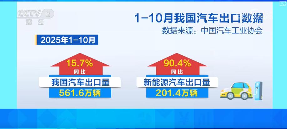 值得注意的是,10月份,新能源汽车月度新车销量,首次超过了汽车新车总销量的50%,达到51.6%。在出口方面,2025年1至10月份,新能源汽车出口201.4万辆,同比增长90.4%。
