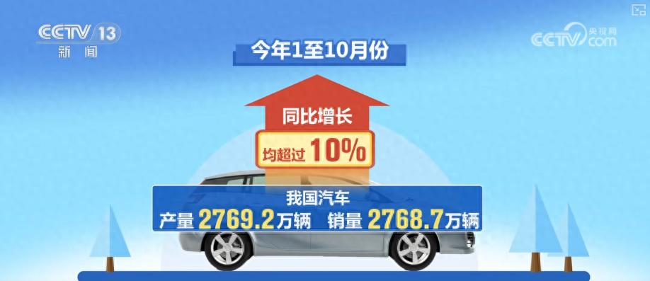 最新数据显示,2025年1至10月份,我国汽车产销量分别完成2769.2万辆和2768.7万辆,同比增长均超过10%。其中,新能源汽车产销量分别完成1301.5万辆和1294.3万辆,同比分别增长33.1%和32.7%。