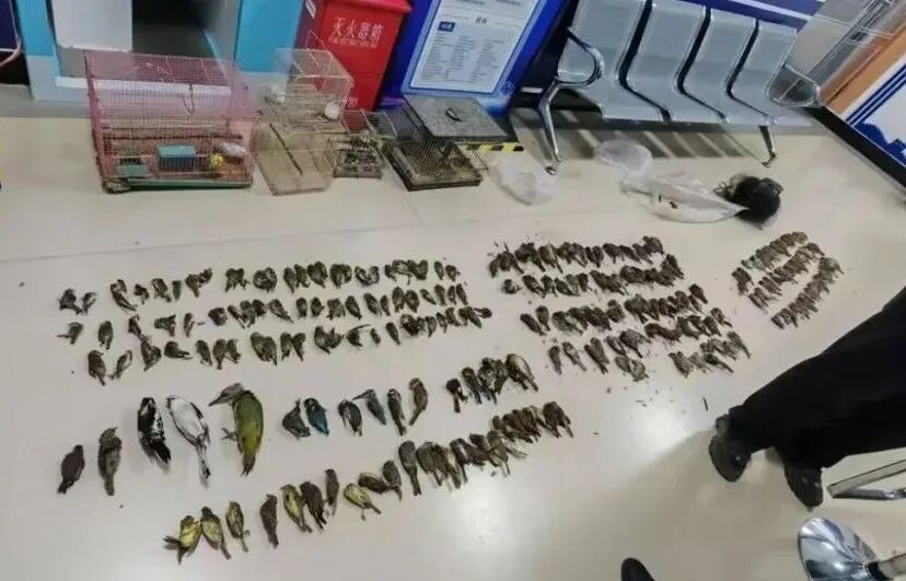 11月12日,据平安沈阳消息,一对夫妻为解馋捕鸟254只。