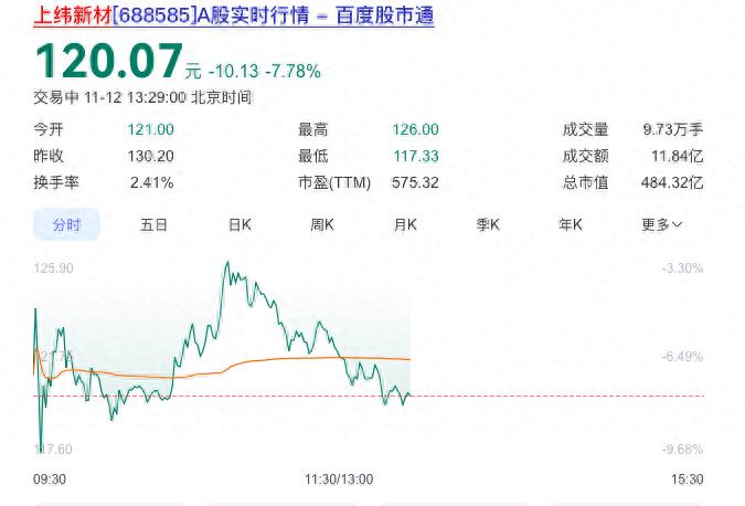 11月12日,上纬新材开盘价应声而落至121元/股,截至记者午间发稿时为止,该股股价一直在120元/股上下徘徊,跌股已逾7%。