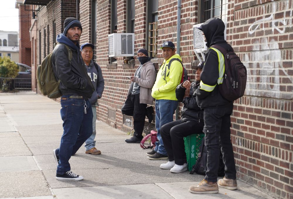 11月7日,人们在美国纽约一处街头零工市场等待雇主。新华社记者张凤国摄