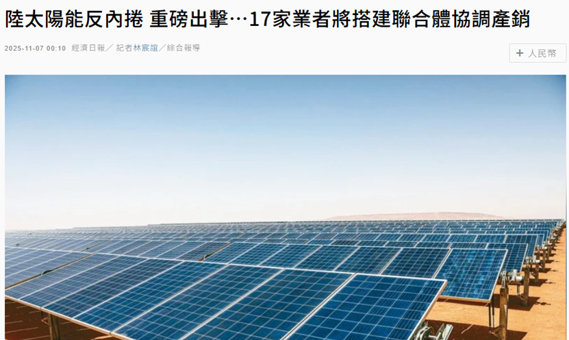 联合新闻网近日发文称,中国内地太阳能反内卷有重大进展,硅料龙头企业协鑫集团董事长朱共山透露,17家硅料企业已基本同意搭建联合体,预计于2025年底前完成。