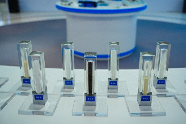 中国北方稀土(集团)高科技股份有限公司展出了各类稀土材料、稀土金属和稀土氧化物等。 视觉中国