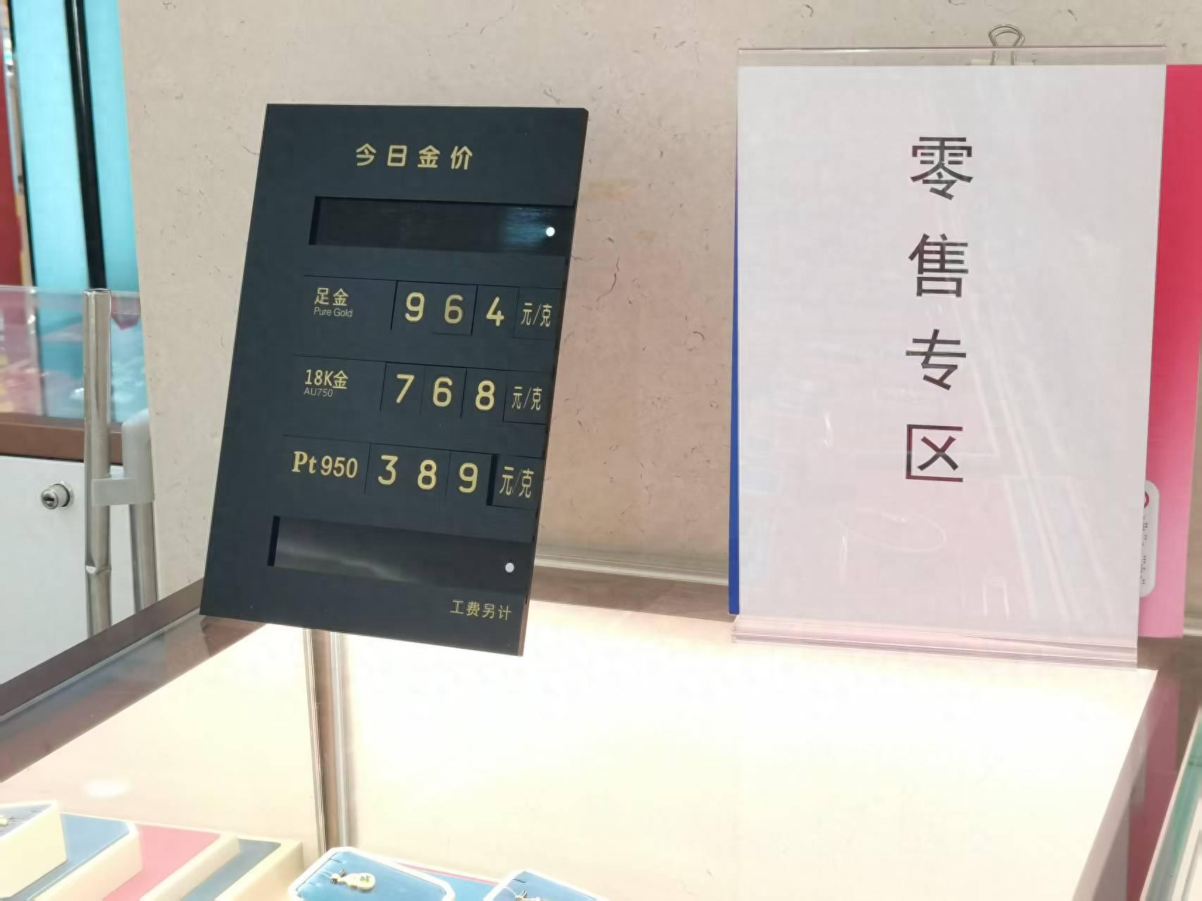 10月22日,北京天雅珠宝城足金报价964元/克。新京报贝壳财经记者 徐雨婷 摄