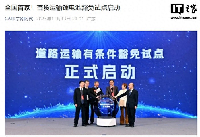 IT之家从官方介绍获悉,宁德时代作为全国首家试点企业,旗下锂电池产品可采用普通货车运输,而无需强制押运,不仅有效解决运力短缺难题,更显著推动全链条降本增效。从“特规品”到“豁免品”,改变的不仅是运输方式,更是行业对电池安全认知的升级。
