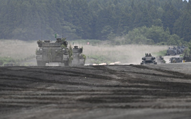 当地时间2025年6月8日,日本静冈县,日本自卫队在富士山下举行为期数天的年度军事演习。图/IC photo