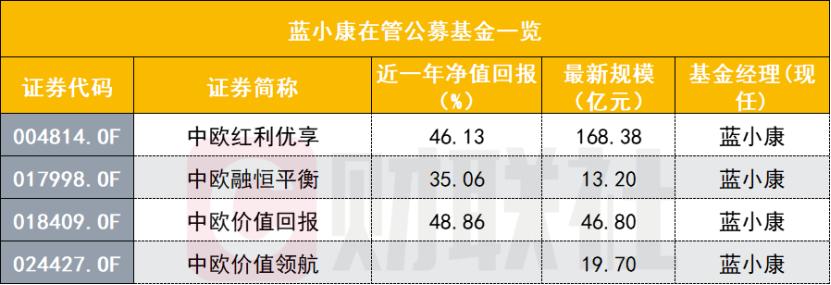 期间,蓝小康曾卸任了中欧价值发现的基金经理,后者截至三季度末规模为18.86亿元。而如果加上四季度以来的2只新发基金的规模,蓝小康目前的在管公募规模或已超260亿元。