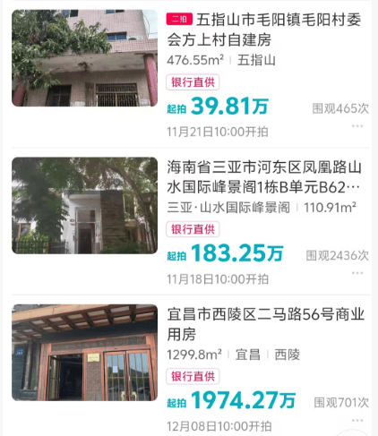 有房产起拍价低于市场均价54%