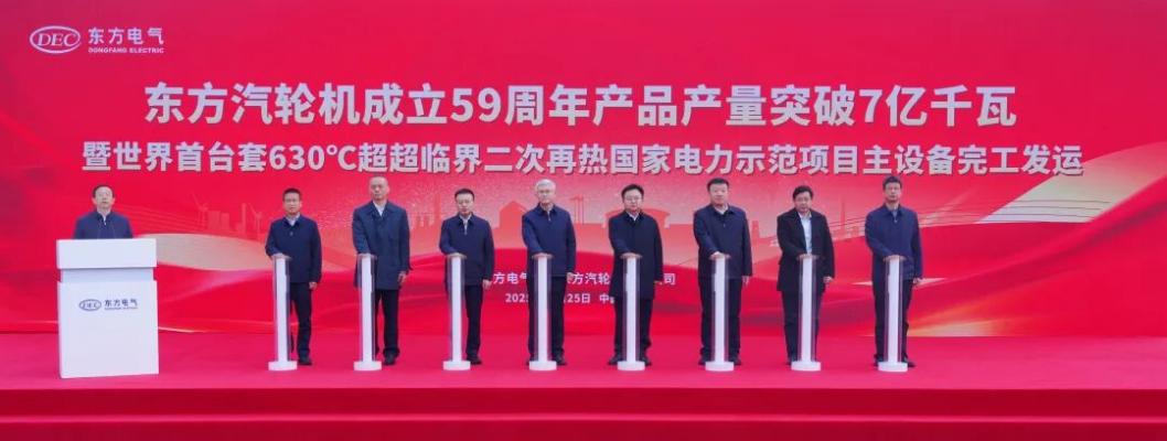 11月25日,世界首台套630℃超超临界二次再热国家电力示范项目主设备完工发运。东方电气集团总经理、党组副书记张彦军,德阳市委书记刘光强等出席活动并见证发运。