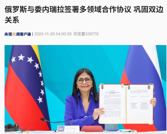 据央视新闻11月28日消息,当地时间11月27日,俄罗斯与委内瑞拉签署多项合作新协议,包括在10个领域推进42项新合作,涵盖能源、农产品、医疗卫生、交通、体育、文化和金融等领域。