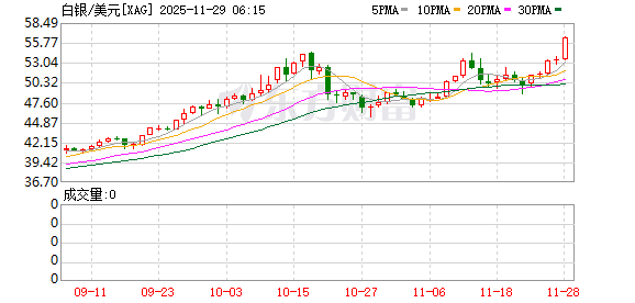 恢复交易后,COMEX白银主力合约拉升超6%,攻破57美元/盎司,年内涨幅正在逼近100%。