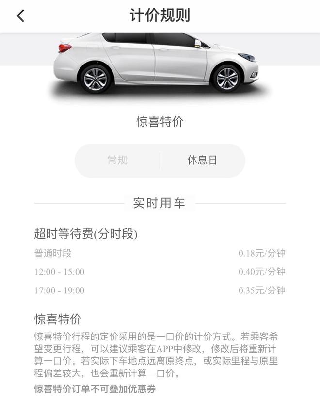 ▲滴滴平台给出的“特惠价”计费标准