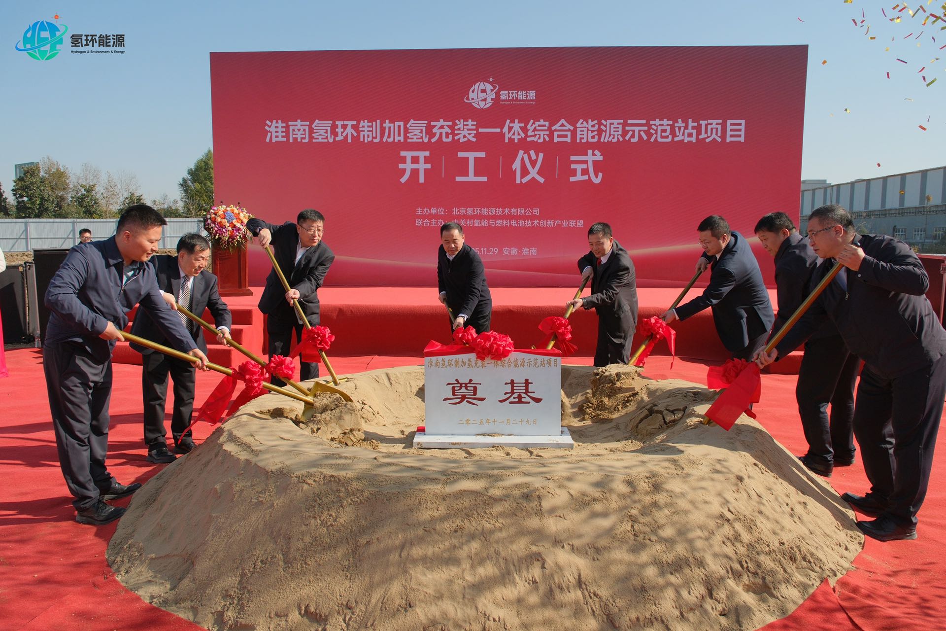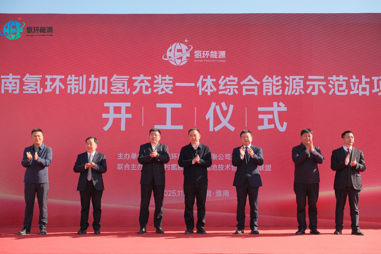 2025年11月29日上午,淮南氢环制加氢充装一体综合能源示范站项目开工仪式在安徽省淮南市田家庵区隆重举行。该项目由北京氢环能源技术有限公司全资子公司——安徽氢环能源技术有限公司投资建设,核心技术采用公司自主研发的HEE-500沼气制氢机(生物燃气制氢设备),是公司在华东区域布局的首个集“制氢、加氢、充装、加油、充电”于一体的多能互补综合能源示范站,该项目的正式开工标志着氢环能源在分布式绿氢供应体系建设中迈出关键一步。