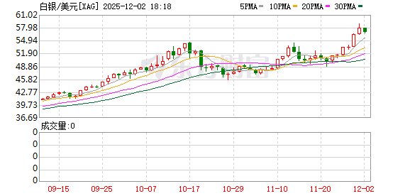 12月1日,伦敦现银再次创下历史新高,一举突破58美元/盎司,持续狂飙。