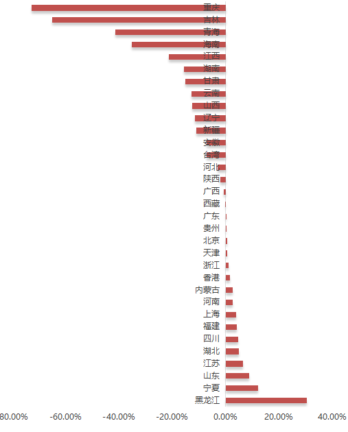 其他变化较大的省份还包括广东、山西、河北、天津、重庆、吉林、青海、海南、江西、黑龙江等省(市),前四省(市)企业数量变化较大,其他省份营收总额变化较大。