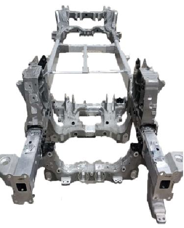 该车架技术成功攻克了超大型薄壁结构件的工艺极限,首次实现投影面积达 4.2 平方米、壁厚跨度从 4 毫米至 50 毫米的一体成型全铝车架制造。