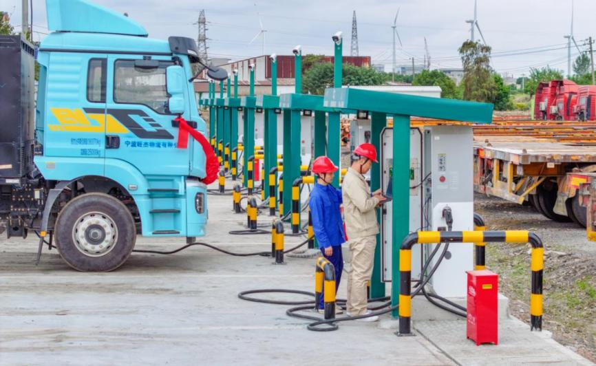 在建设高压岸电和绿电码头的同时,国网浙江电力还将港口绿色低碳发展的“脉搏”传导至港区外的交通运输领域,为长三角的绿色物流运输贡献力量。
