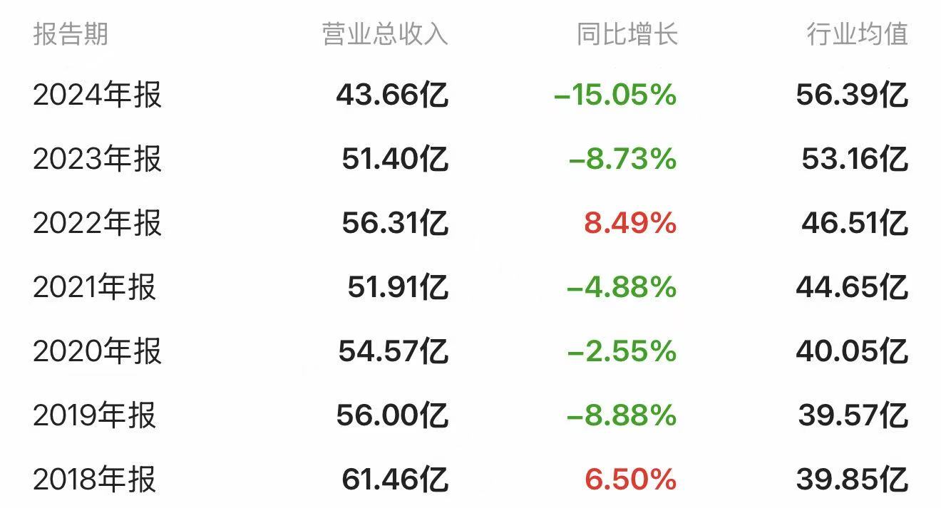 近年来,金杯汽车营收增长乏力。2018年,金杯汽车营收达到61.46亿元的高点后,2019年至2023年,营收一直在56亿至51亿元间徘徊,2024年营收降到了43.66亿元,营收已连续两年下降。