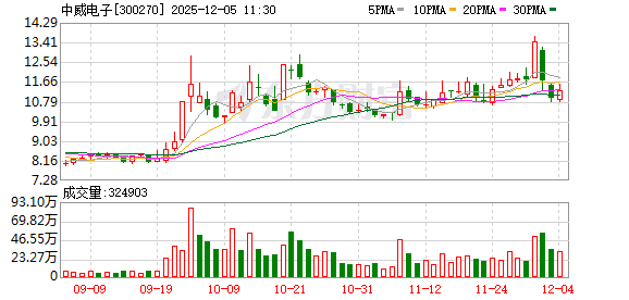 2025年9月以来,中威电子股价迎来一轮强势上涨,后有所回落。12月4日,中威电子收盘价为11.25元/股,最新市值为34.07亿元。
