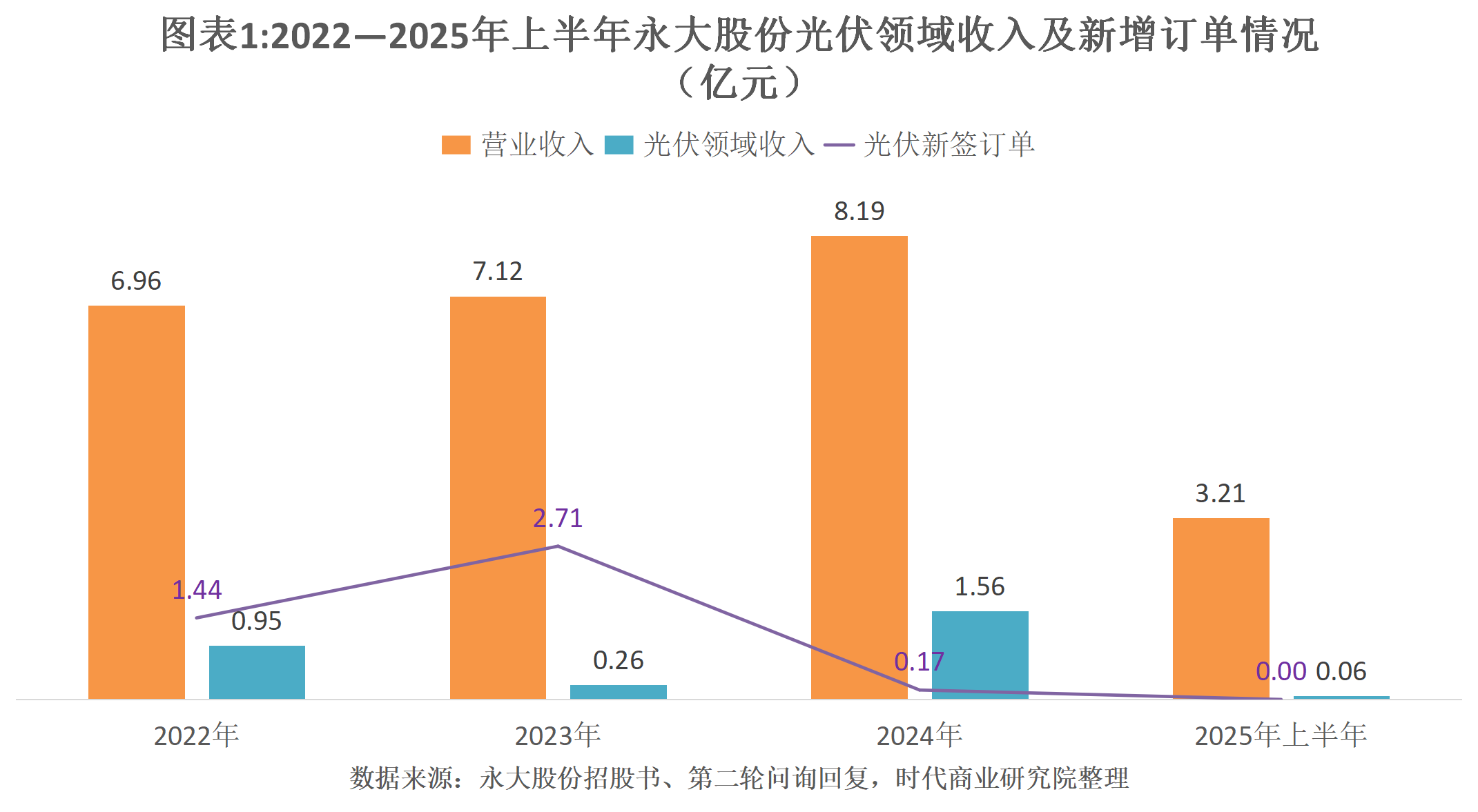 从业绩上看,报告期内(2022—2025年上半年)永大股份的营收稳步增长,2022—2024年营收复合增长率达到8.53%。然而,亮眼的业绩下,其光伏业务收入和新签订单金额大起大落。2025年1—10月,光伏业务新签订单更是“归零”,业绩增长持续性值得关注。