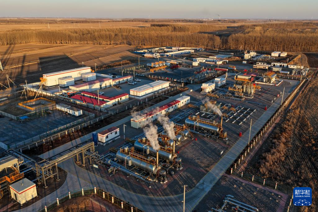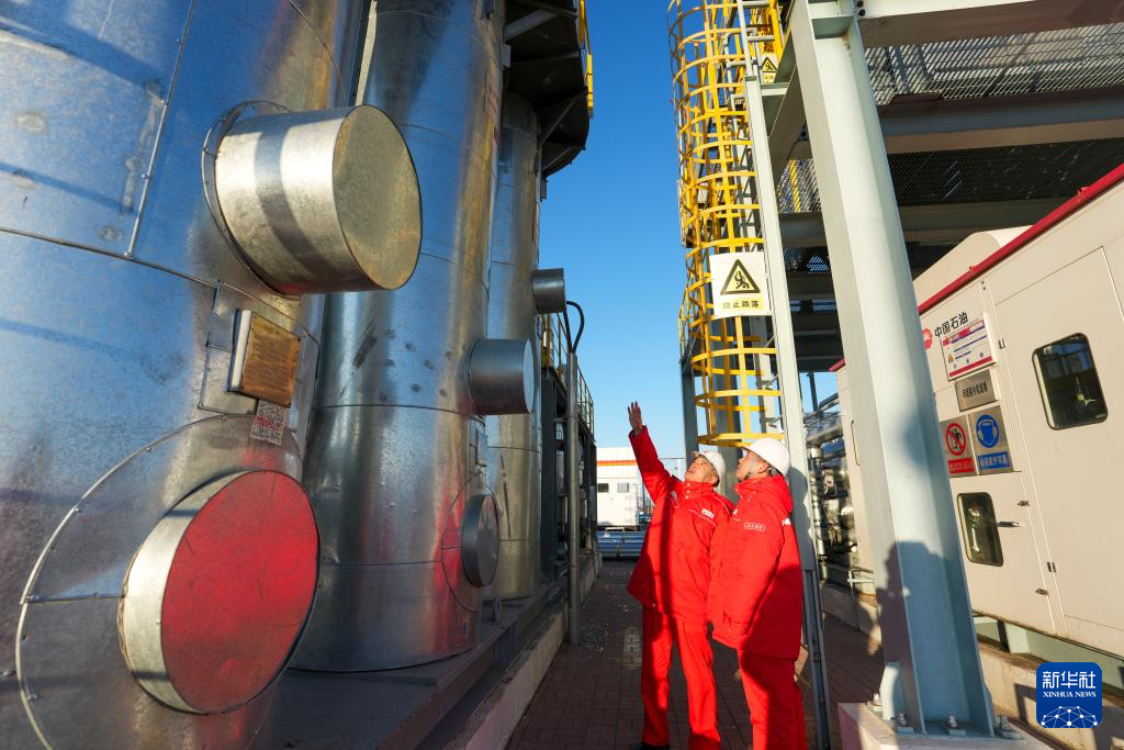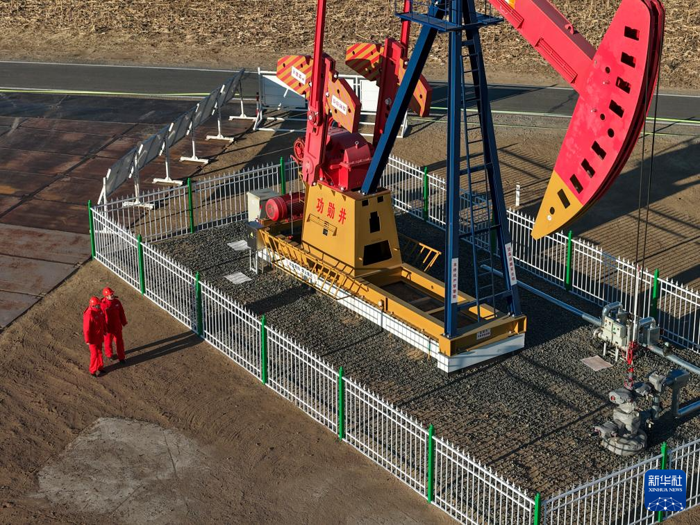 中国石油大庆油田12月5日发布消息,经过5年集中勘探开发,大庆古龙页岩油年产量已突破百万吨,实现页岩油规模化效益开采。  新华社记者 王松 摄