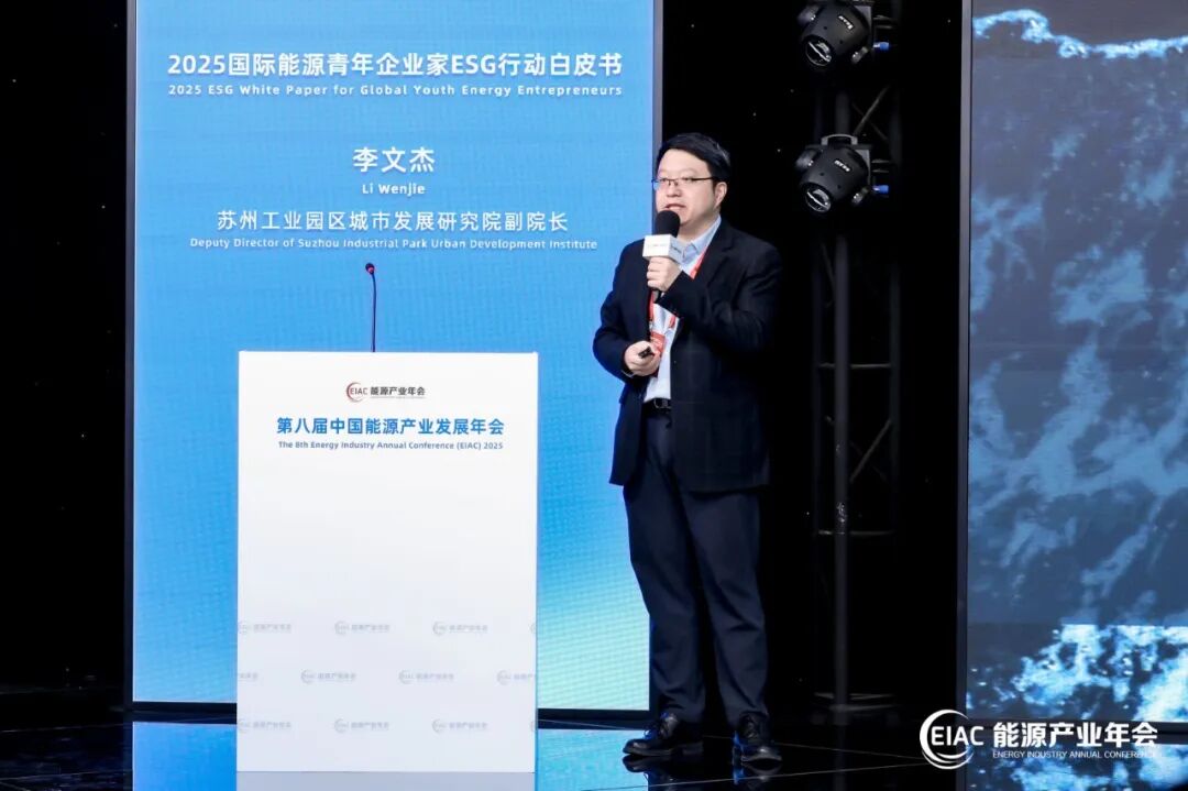 12月4日,2025第八届中国能源产业发展年会在北京举行。年会以“构建新型电力体系 建设能源强国”为主题。本届年会由中国能源报、中国能源研究会主办,G20青年企业家联盟中国总部联合主办,中央和国家机关有关部门负责同志、外国驻华使节、地方政府主管部门代表、中外企业负责人和专家学者等参加论坛。苏州工业园区城市发展研究院副院长李文杰出席会议并发布《2025国际能源青年企业家ESG行动白皮书》暨ESG能源青年企业家创新TOP30。