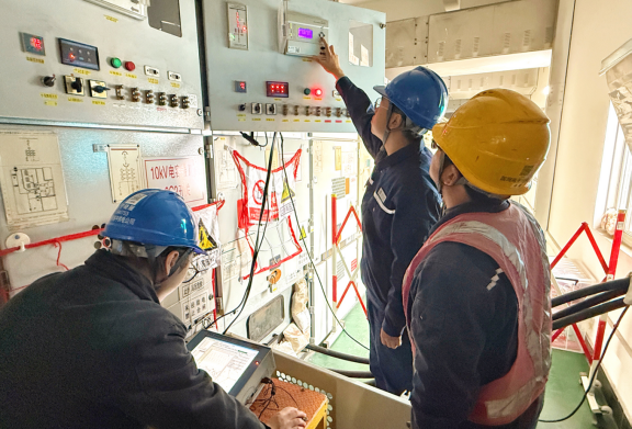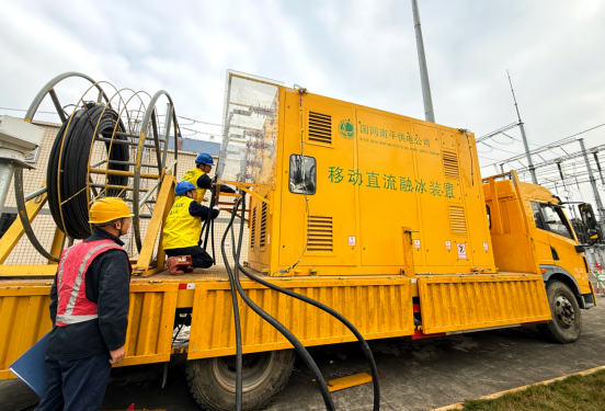 演练中,移动式直流融冰车作为核心装备,通过可控硅整流阀、高压刀闸等设备将交流电转换为直流大电流,精准施加于目标线路,大电流使导线自身从内到外均匀发热,实现高效、可控的融冰效果。覆冰监测、装置操作、线路测温、谐波监测等专业组密切配合,完成装置接线、保护定值核对、升压升流等关键操作。经过两个多小时的紧张有序处置,110千伏丹九Ⅱ路融冰演练任务圆满完成。演练结束后,现场人员迅速恢复线路原始接线方式,电网即时恢复正常运行。